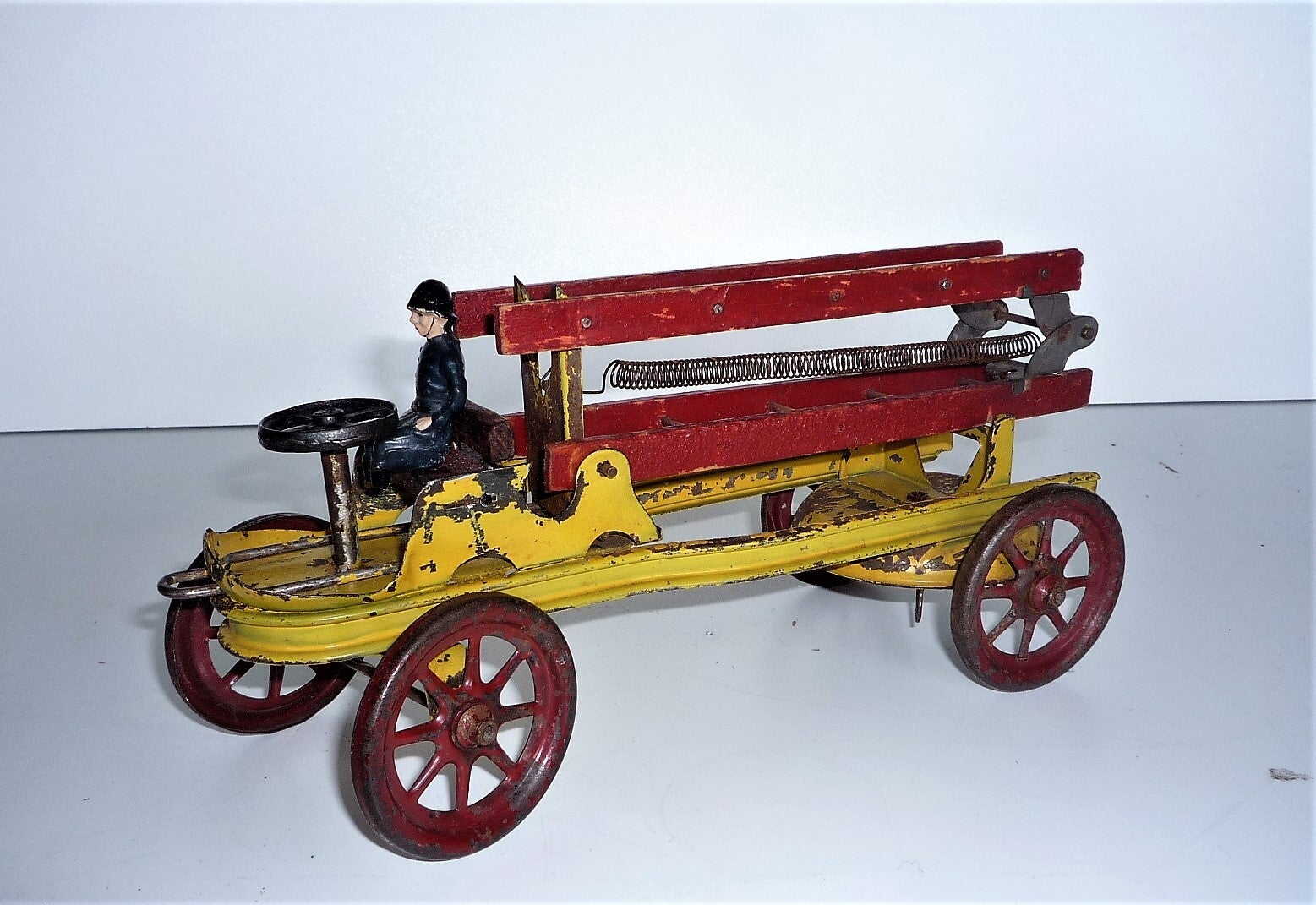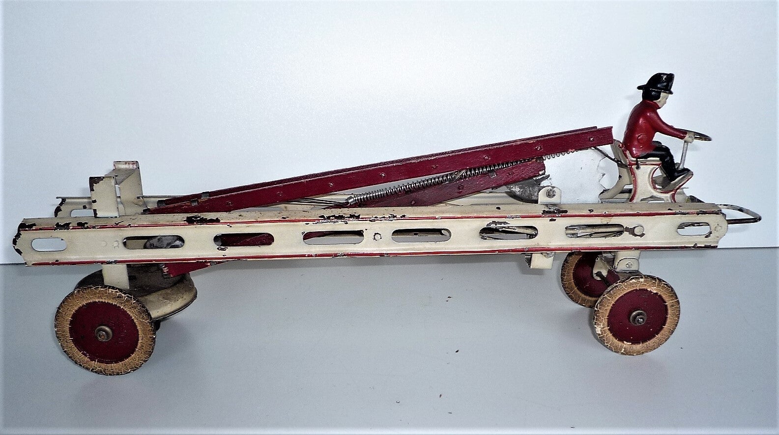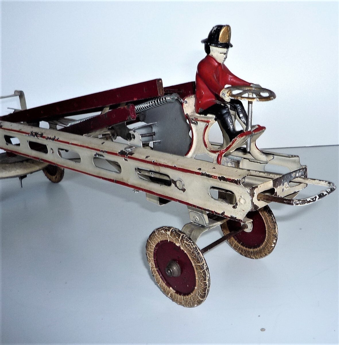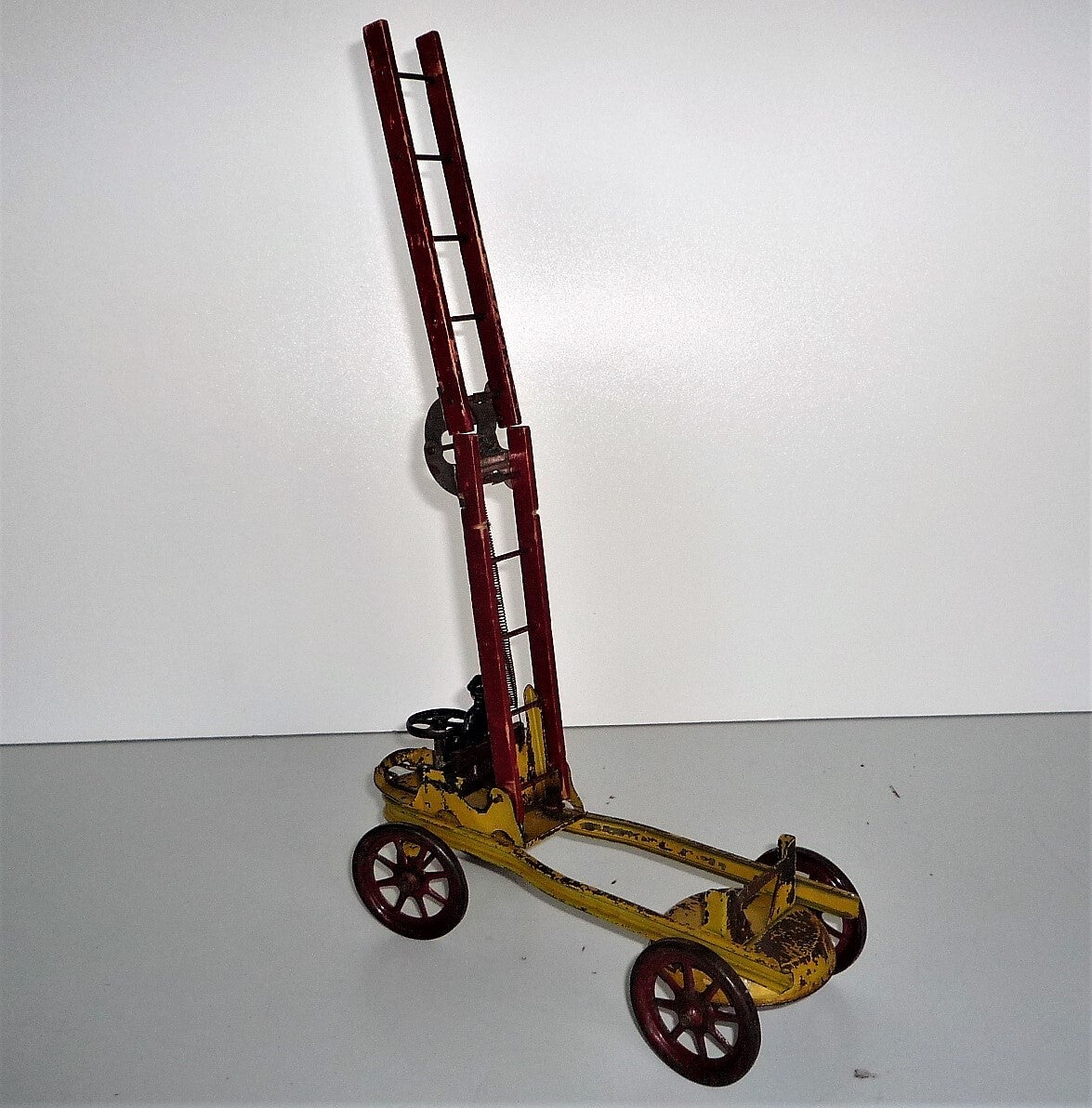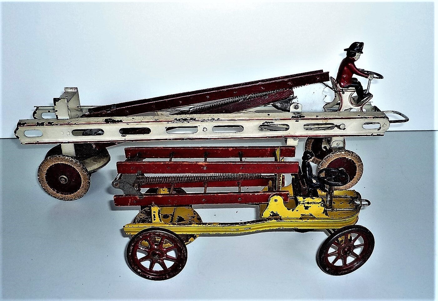 Keystone, (USA) two wind-up aerial ladder fire truck 1930, made of pressed steel.