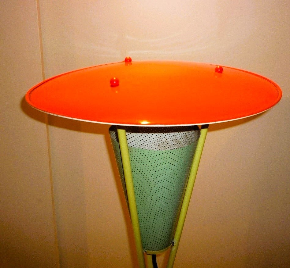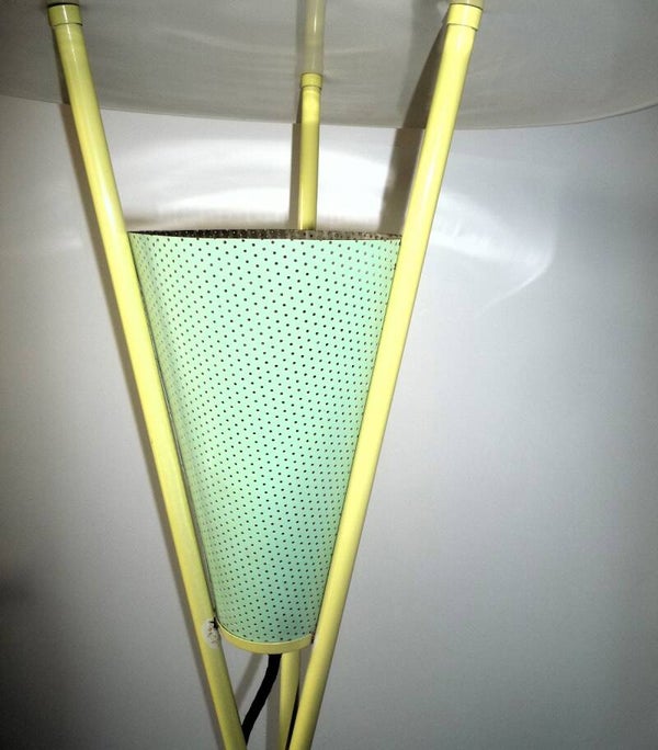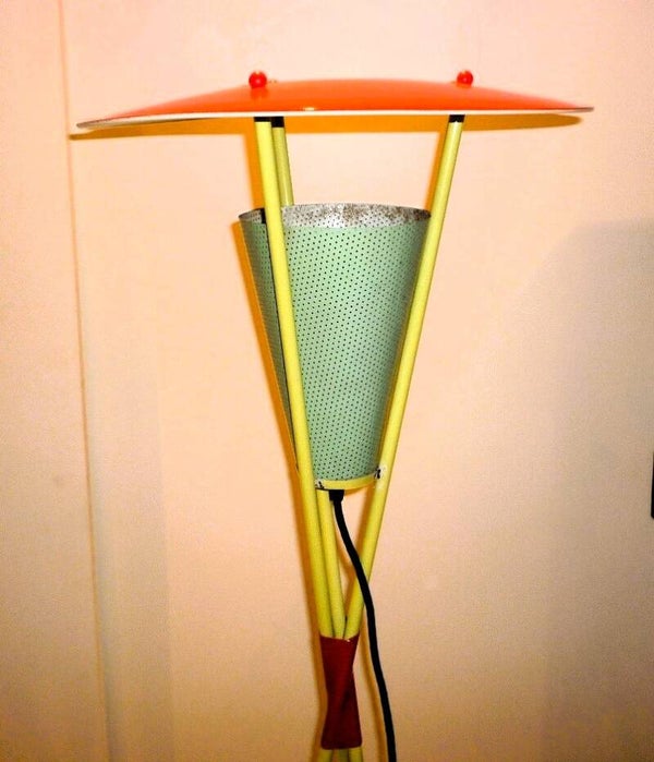 Pilastro tripod floor lamp design by Tjerk Reijenga 1950.Lacquered metal standing floor lamp in original and beautiful condition.Elegant design is typical 1950.Made in Holland.H=160cm (63 Inches) W=43cm (17 Inches)Only Local pick-up.
