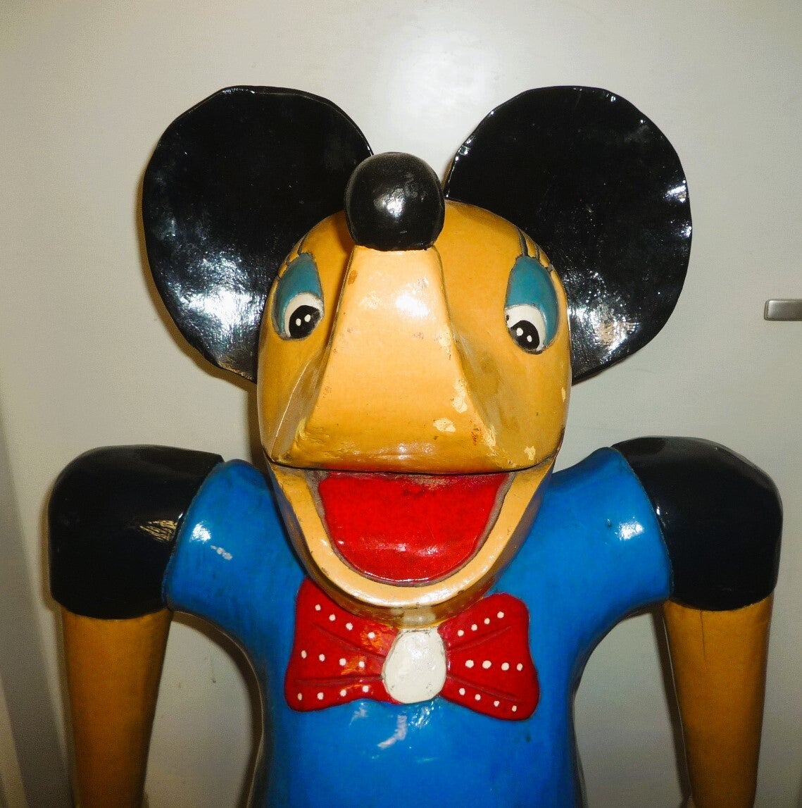 Micky and Minnie mouse, Two wooden statues of Mickey and Minnie Mouse, Walt Disney ca1950.